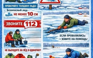 Информация о мерах безопасности на водных объектах в зимний период! Зимние водоемы - это зона повышенного риска. Прежде чем выйти на лед, нужно убедиться в его прочности (безопасная толщина - от 10-12 см), а также избегать мест у берегов, вмерзших растений, течения и слива теплых