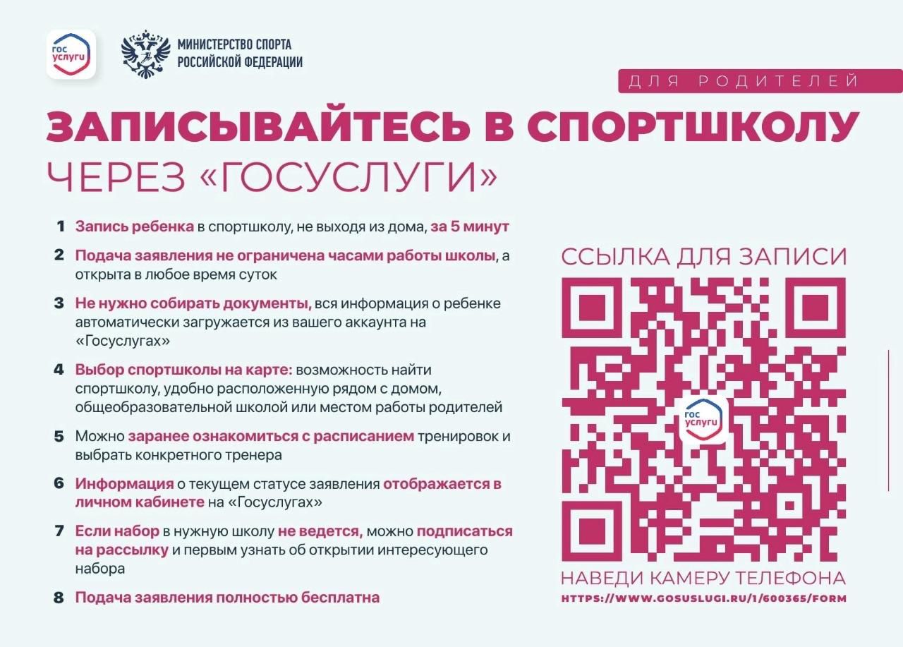 Запись производится через портал «Госуслуги» с помощью сервиса «Электронная запись в спортивную школу».